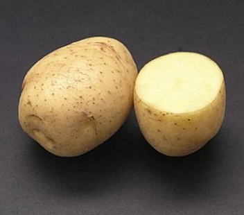 Клубни - овальные с мелкими глазками. Кожура гладкая и слегка шероховатая, желтая. Мякоть светло-желтая. Масса товарного клубня 82-107 г. Лежкость 94%.
